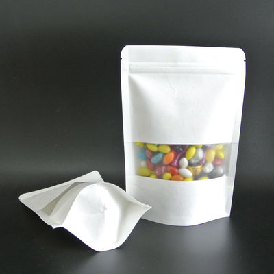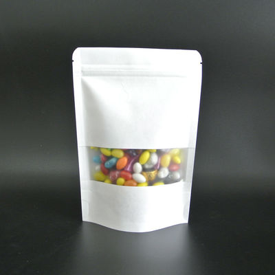 حقائب ورقية كرافت بيضاء مطبوعة خصيصاً مع نافذة واضحة متطاطية مع سحاب للحلوى والوجبات الخفيفة وتغليف الأغذية