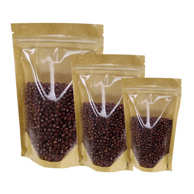الجانب الأمامي الشفاف الخلفي الجانب البني أكياس كرافت الوقوف أكياس كرافت مع زيبلوك لتخزين عبوات الطعام